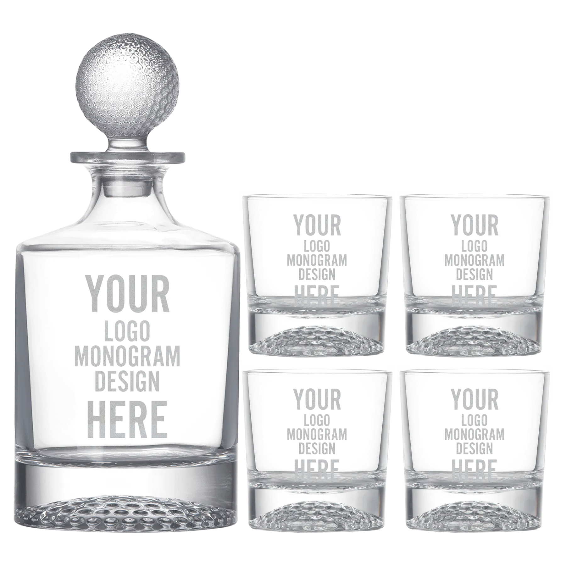 - This decanter features a golf ball stopper lid and a dimpled bottom to replicate a golf ball.