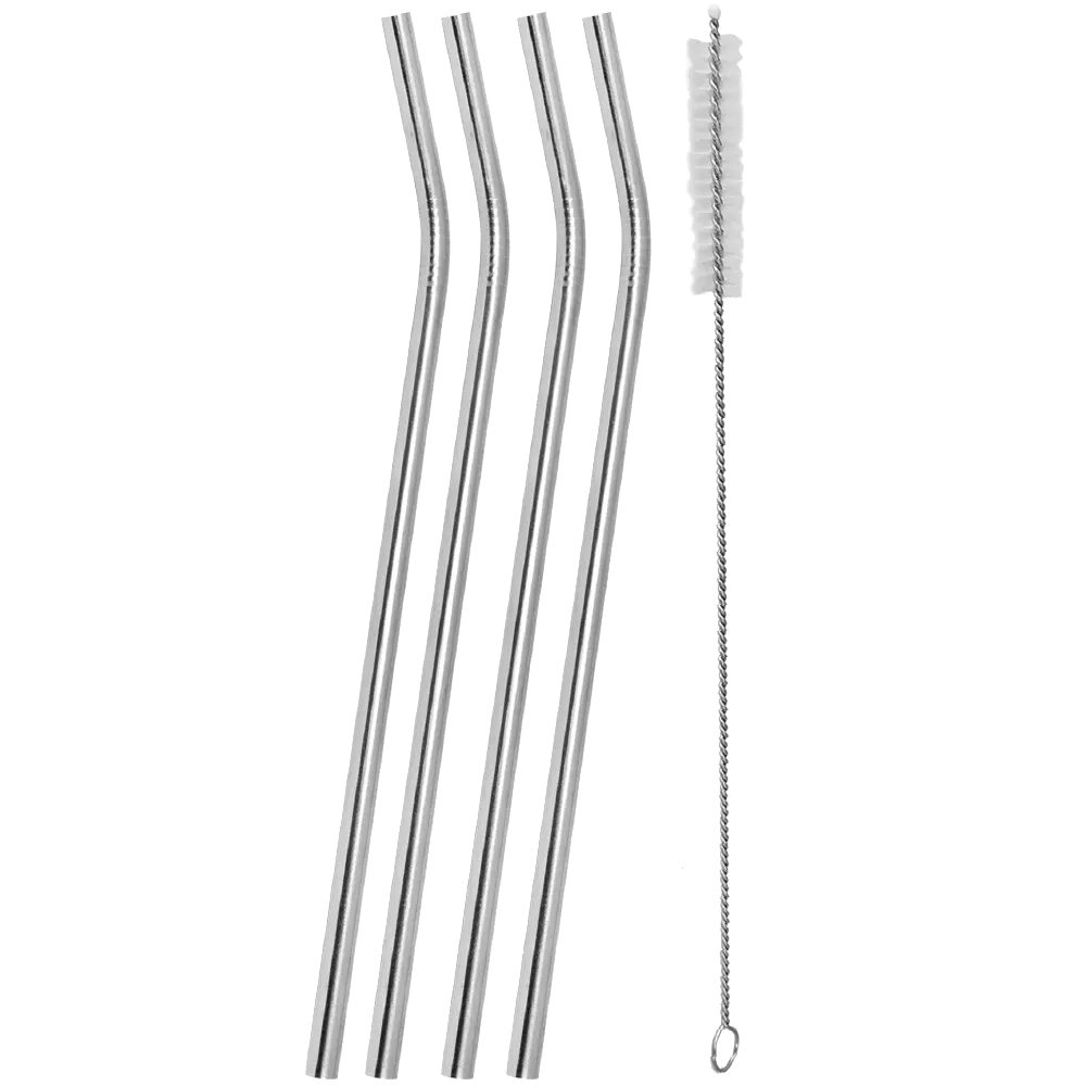 10" Stainless Straw Set of 4 with Cleaning Brush