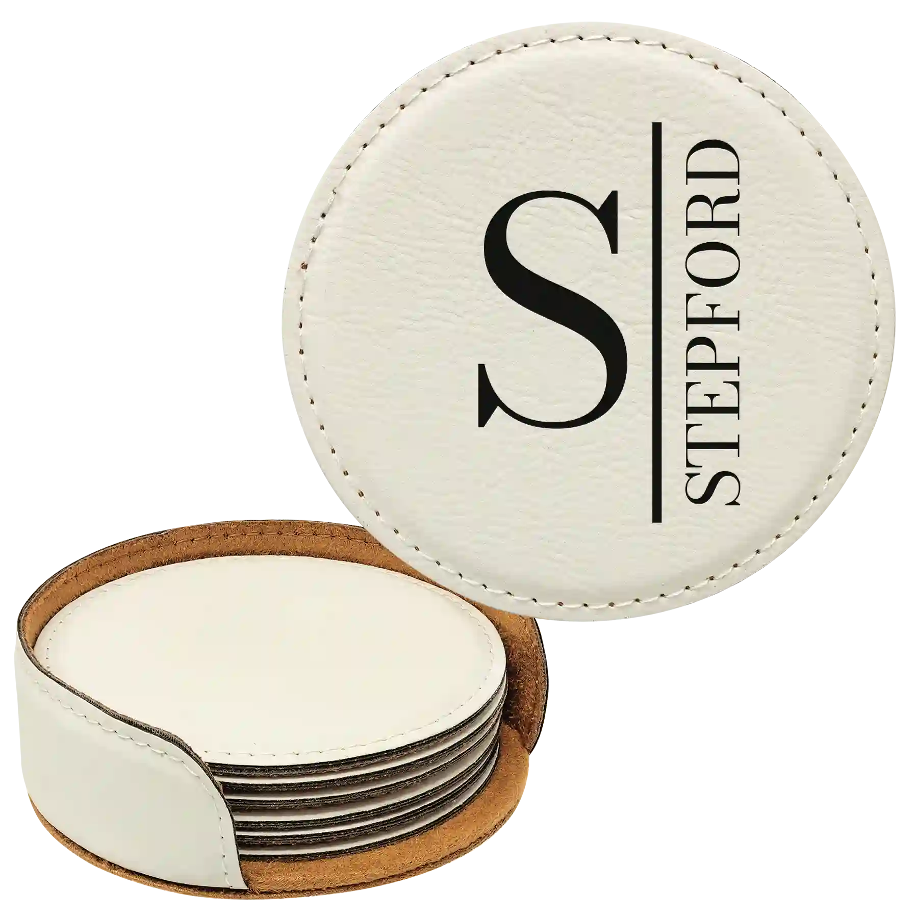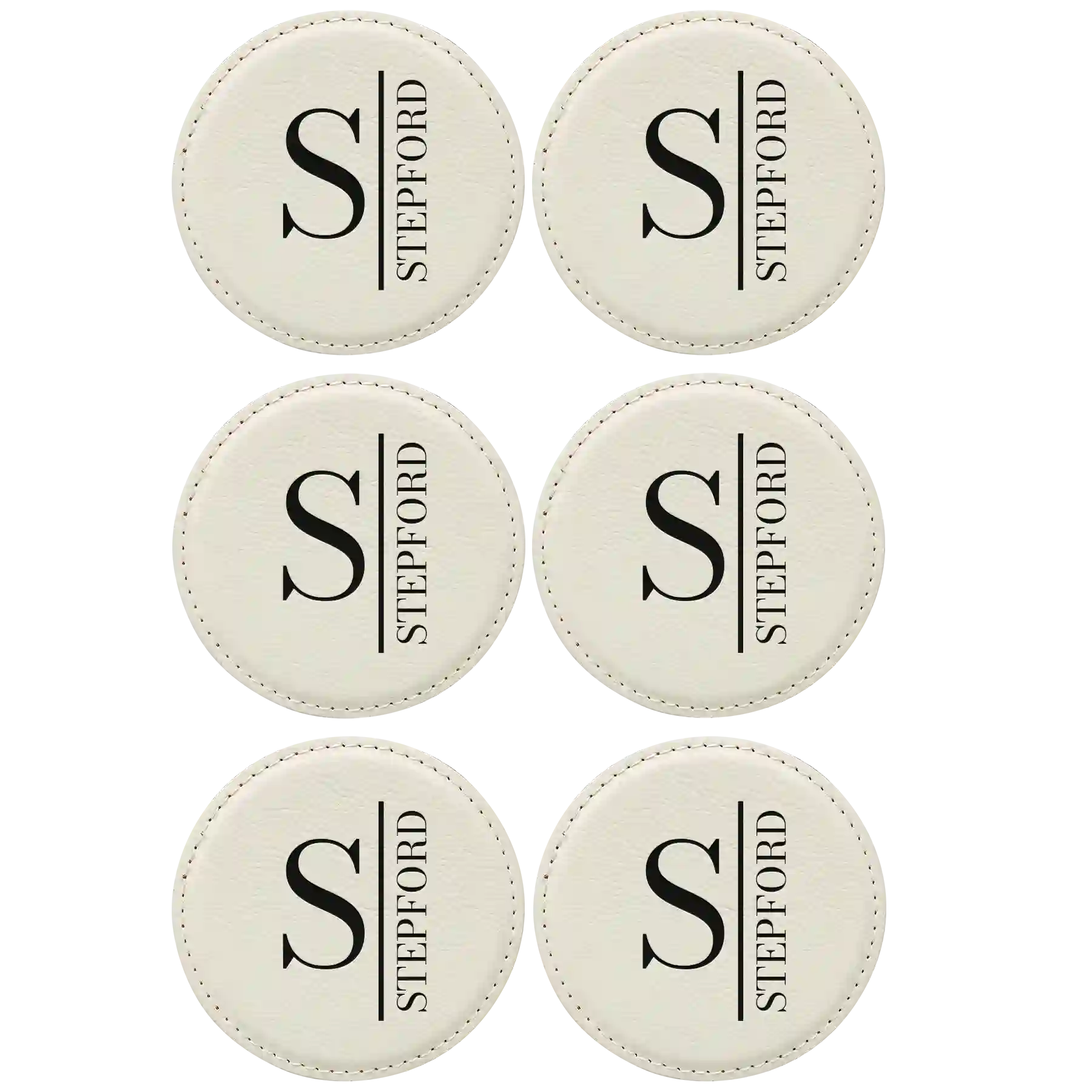 Personalized Vertical Name Round Leatherette Coasters Set of 6 - White