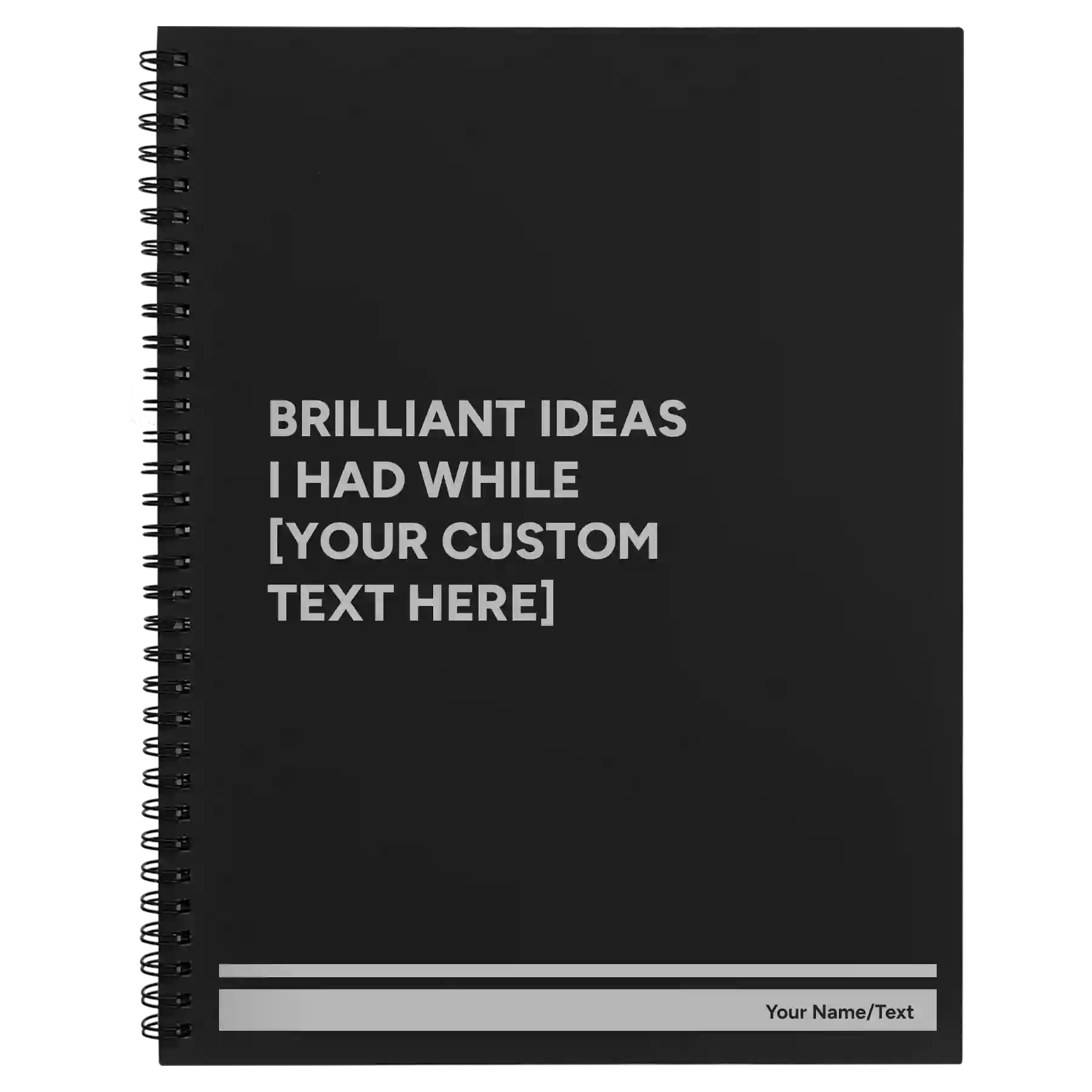 Personalized Brilliant Ideas Custom Text Spiral Notebook (large) - Black