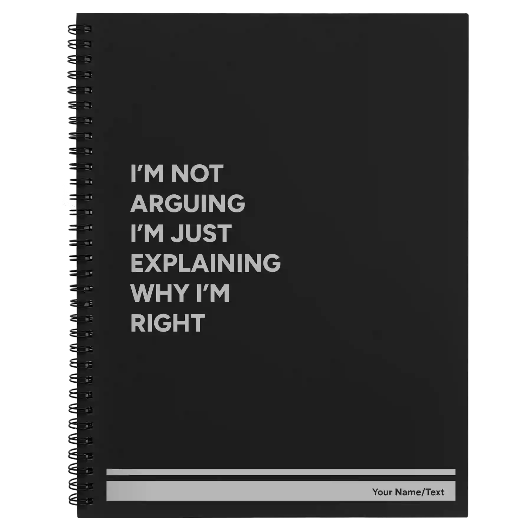 Personalized Not Arguing Spiral Notebook (large) - Black