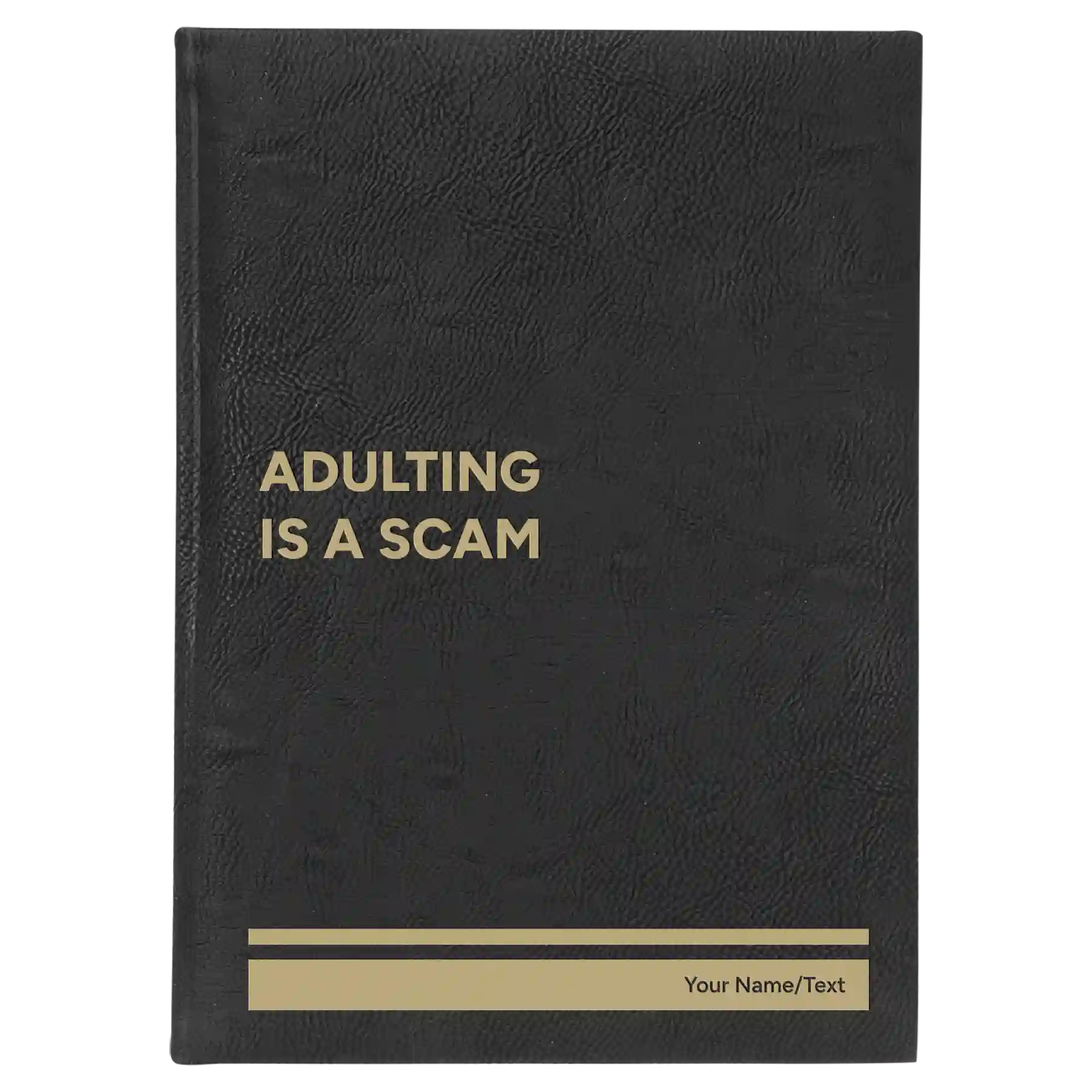 Personalized Adulting is a scam Leatherette Journal (large) - Black-Gold
