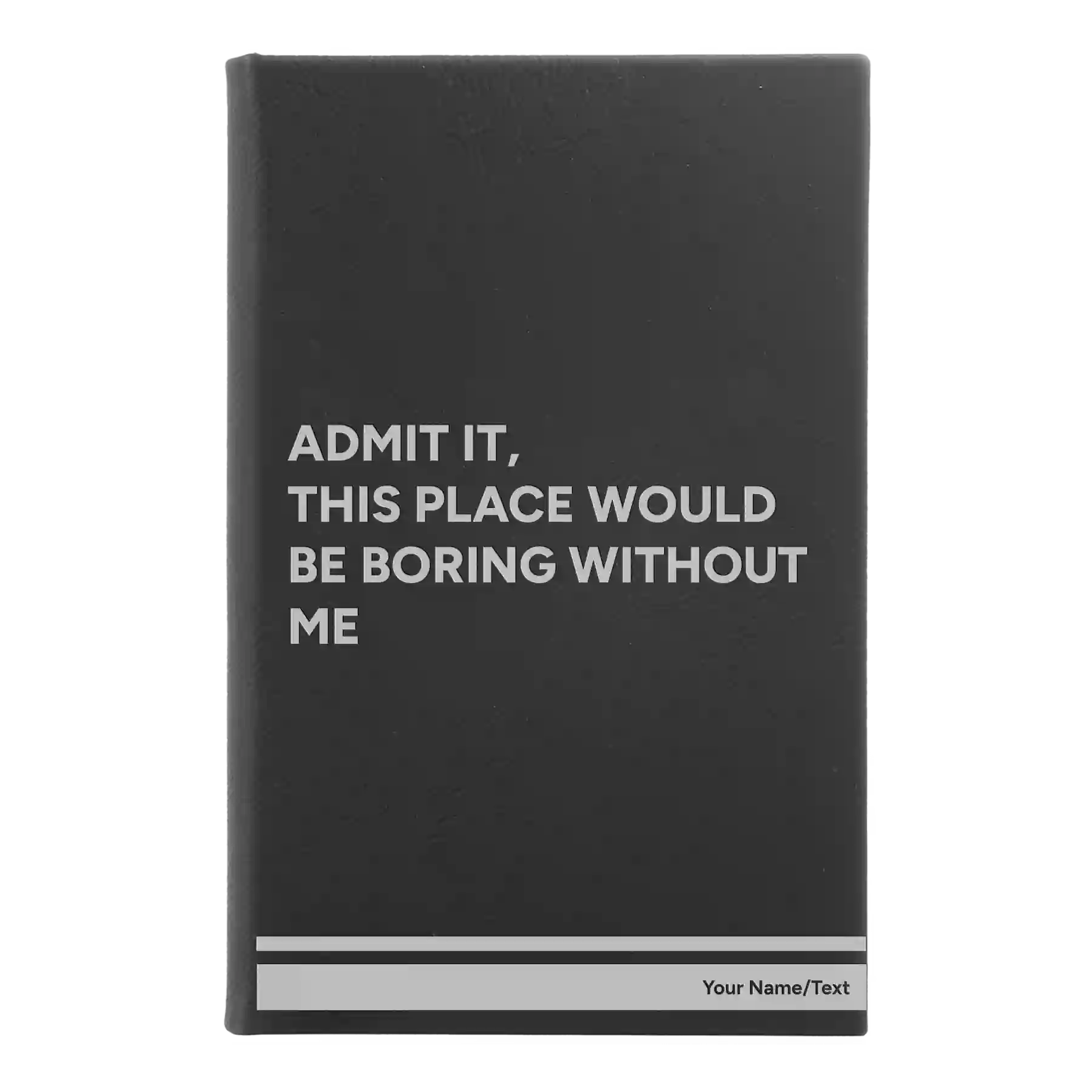 Personalized Boring Without Me Leatherette Journal (small) - Black-Silver