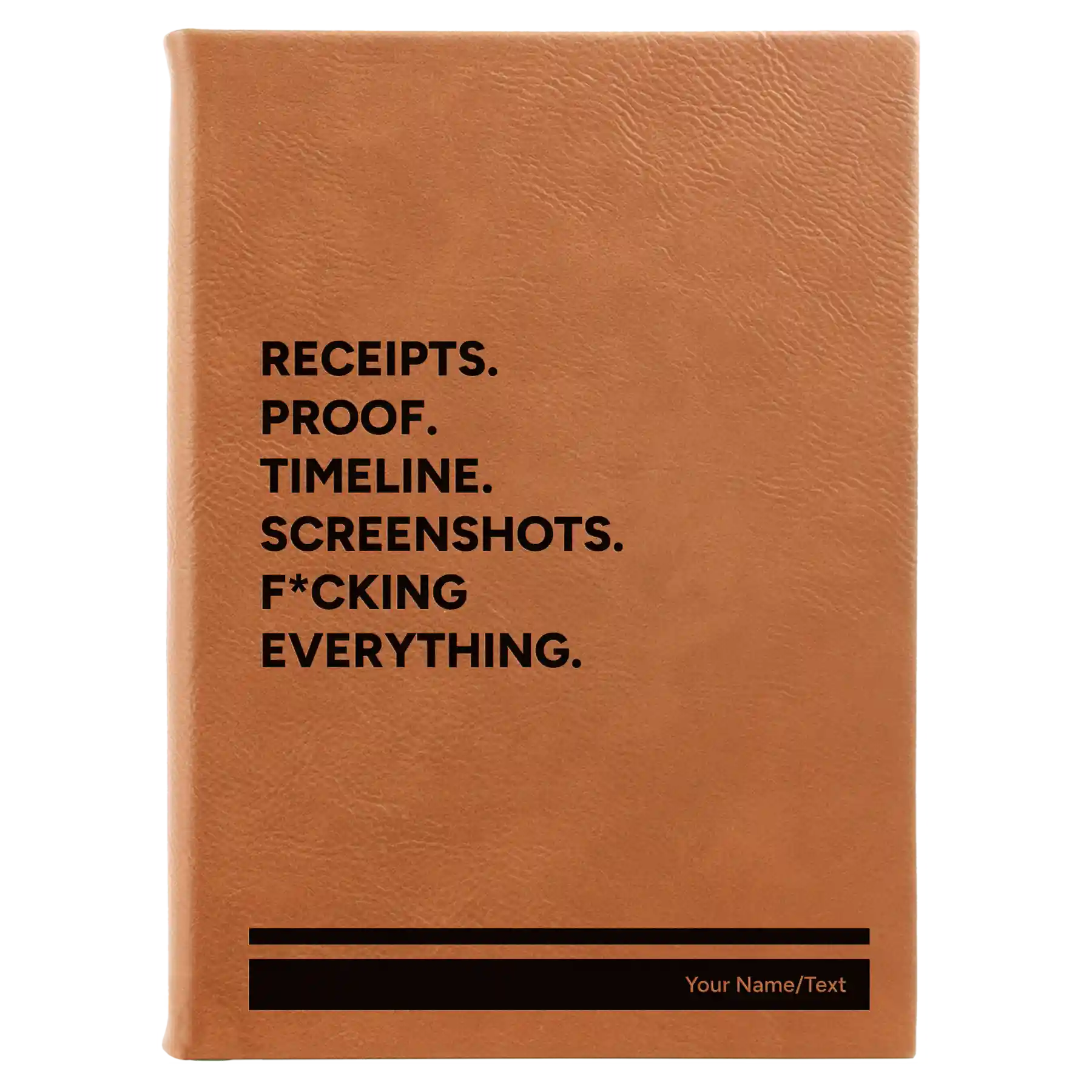 Personalized Receipts. Proof. Timeline. Screenshots. F*cking Everything Leatherette Journal (large) - Rawhide