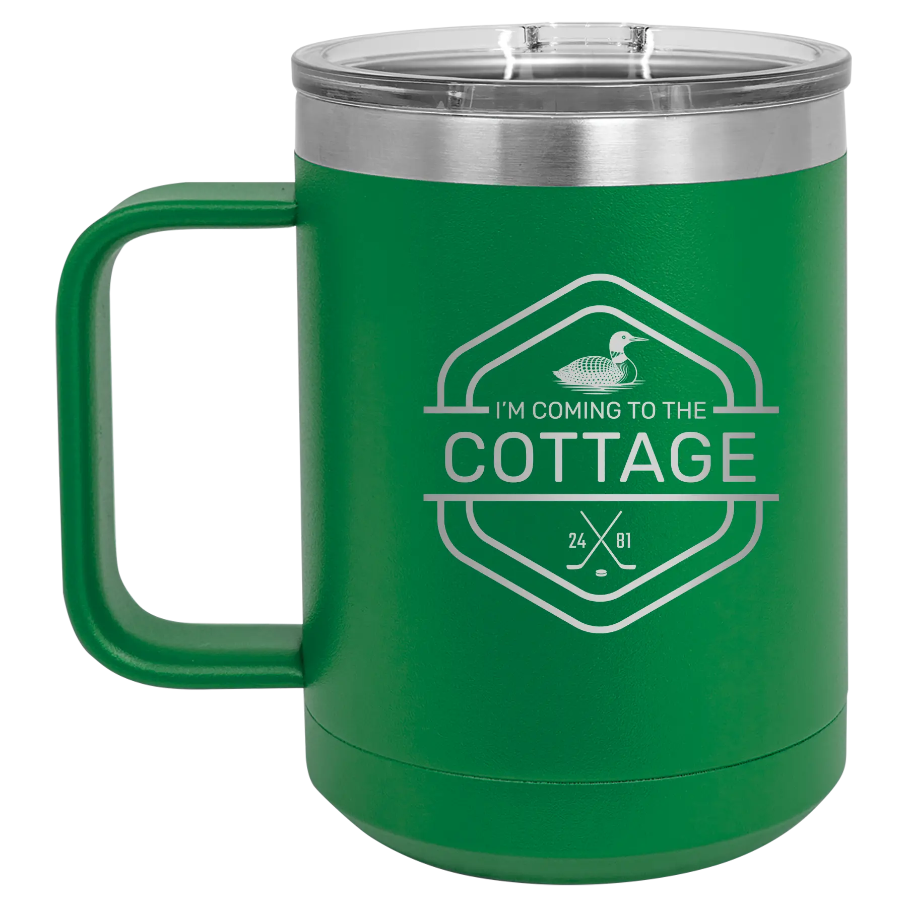 Personalized I'm Coming to the Cottage (Loon) 15 oz Mug - Green
