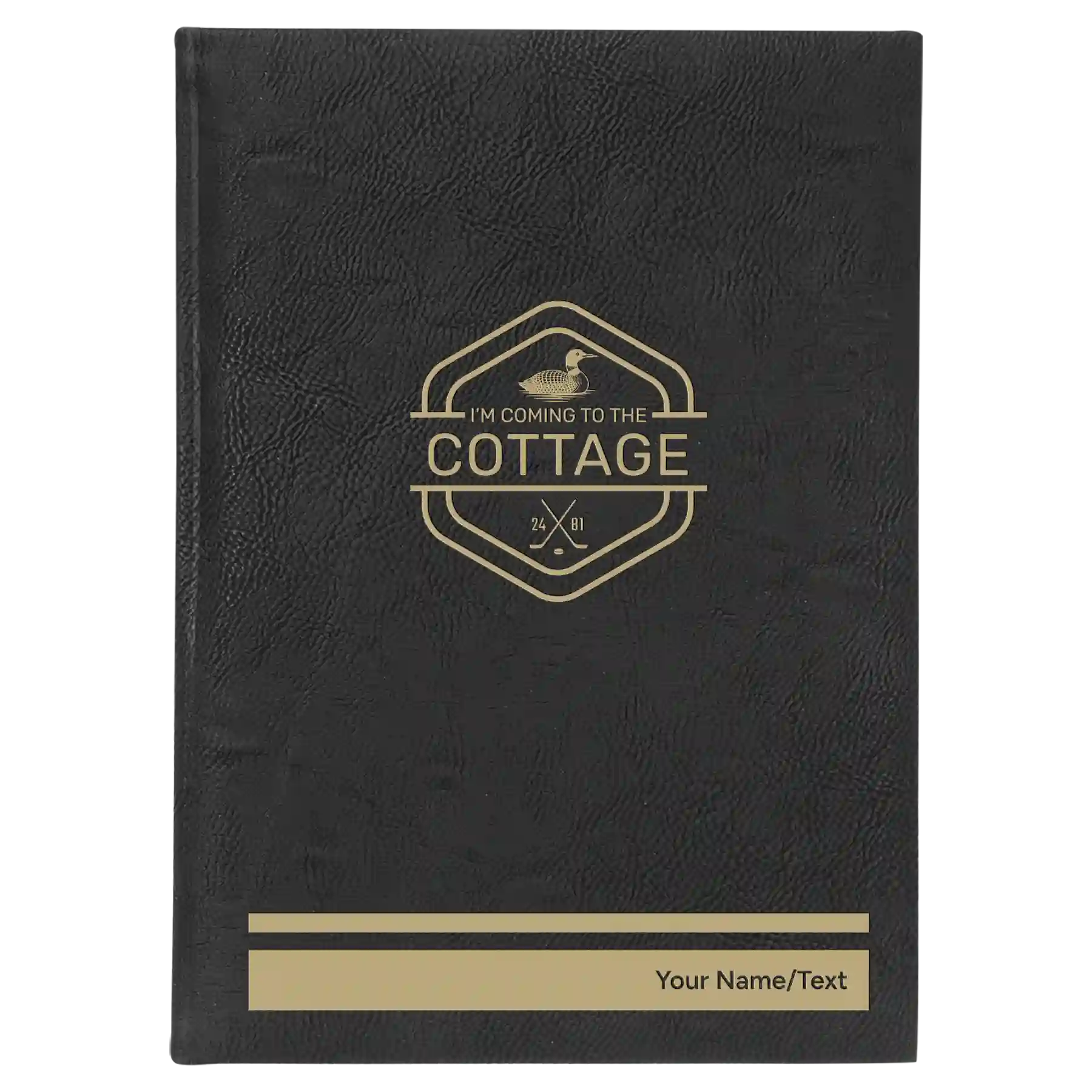 Personalized I'm Coming to the Cottage (Loon) Leatherette Journal (large) - Black-Gold