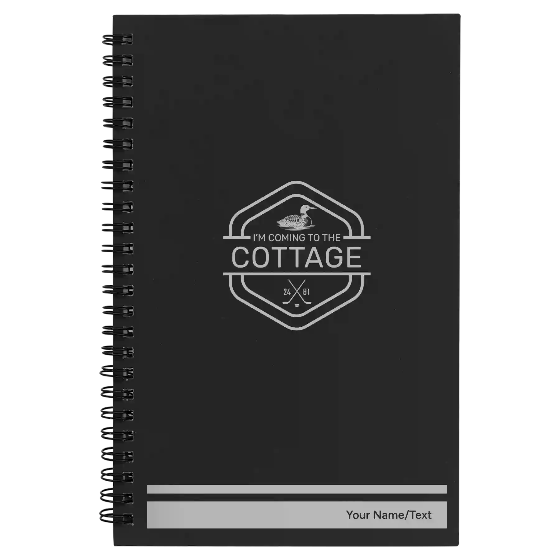 Personalized I'm Coming to the Cottage (Loon) Spiral Notebook (small) - Black