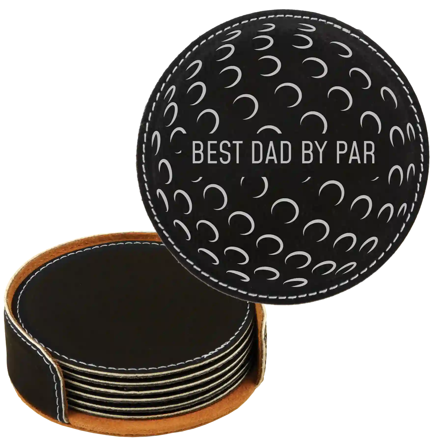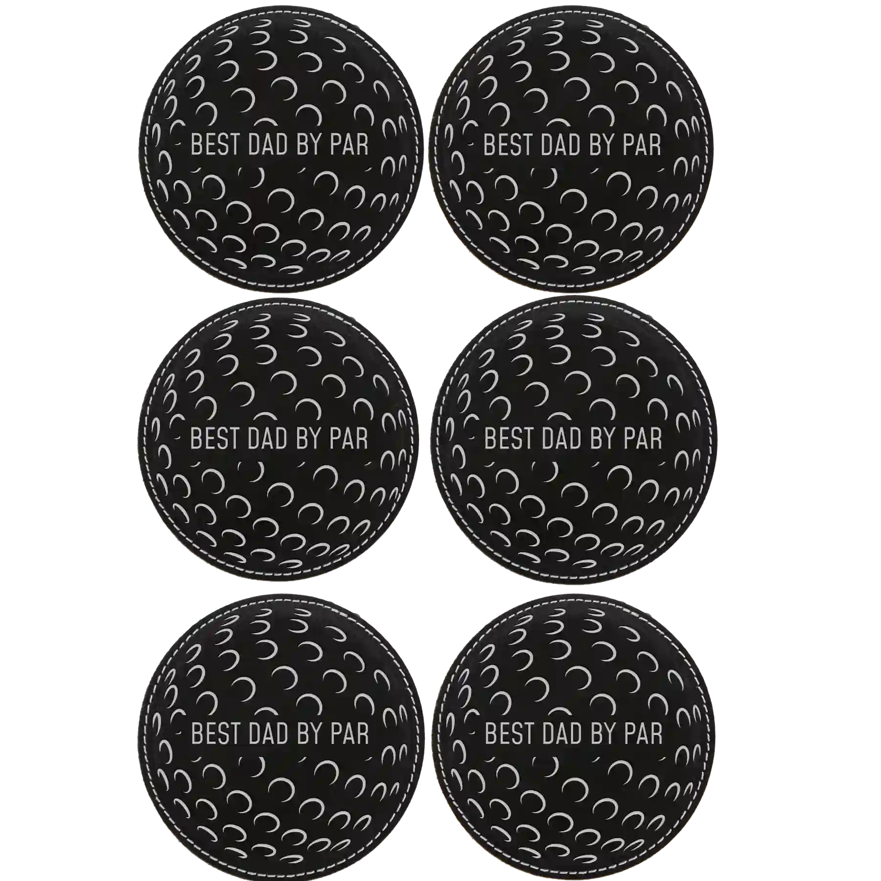 Personalized Best Dad by Par Round Leatherette Coasters Set of 6 - Black Silver