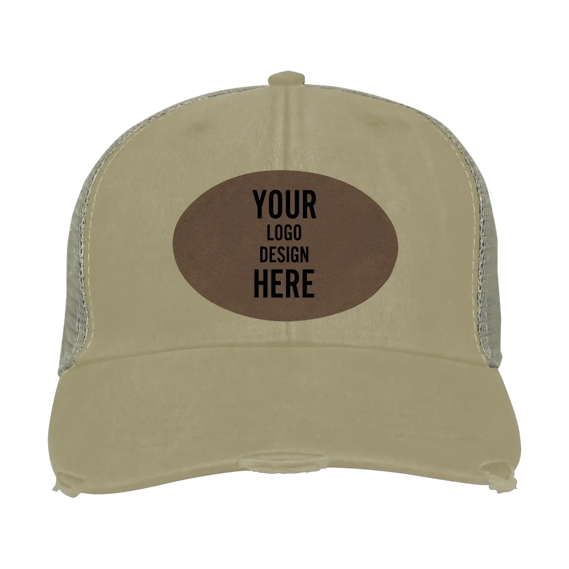 Adam's Ollie Distressed Trucker Hat - Khaki with Leatherette Patch - Oval