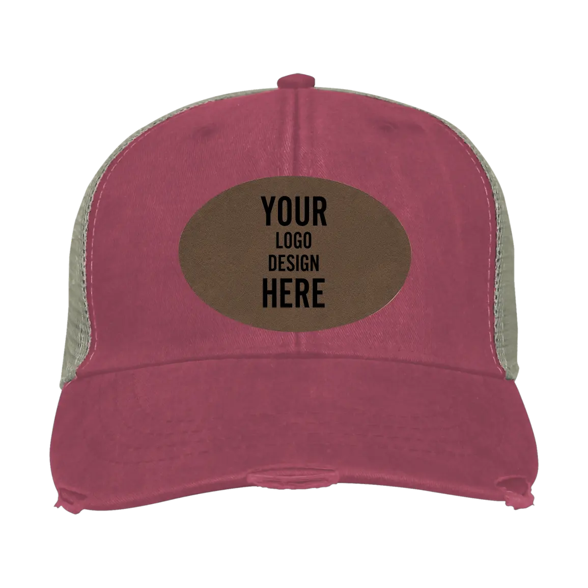 Adam's Ollie Distressed Trucker Hat - Maroon with Leatherette Patch - Oval