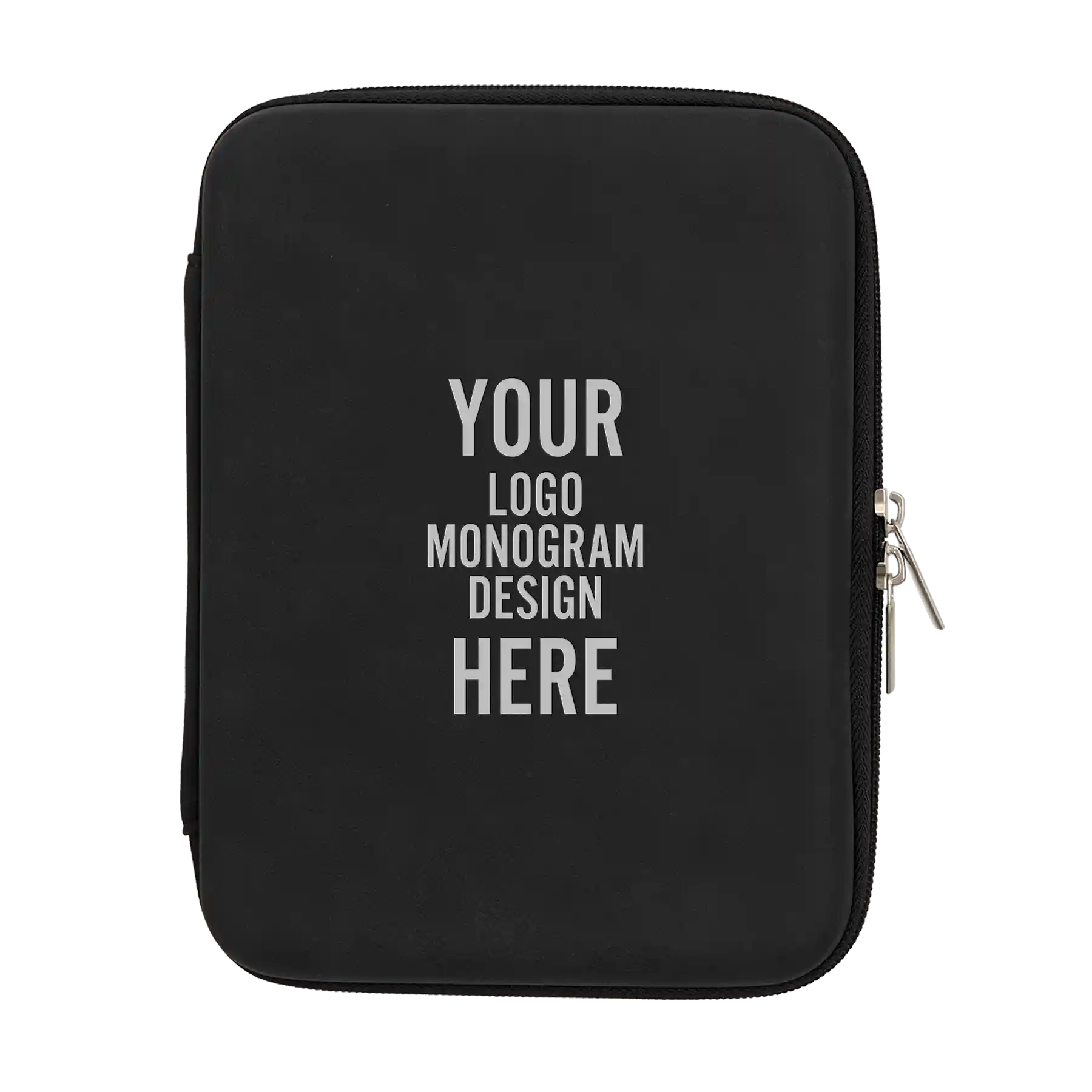 Personalized Leatherette Tech & Cord Case 8.5" x 6" x 1.75" - Black/Silver